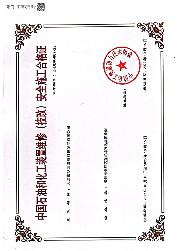 化工協(xié)會(huì)維修技改資質(zhì)證書(shū)